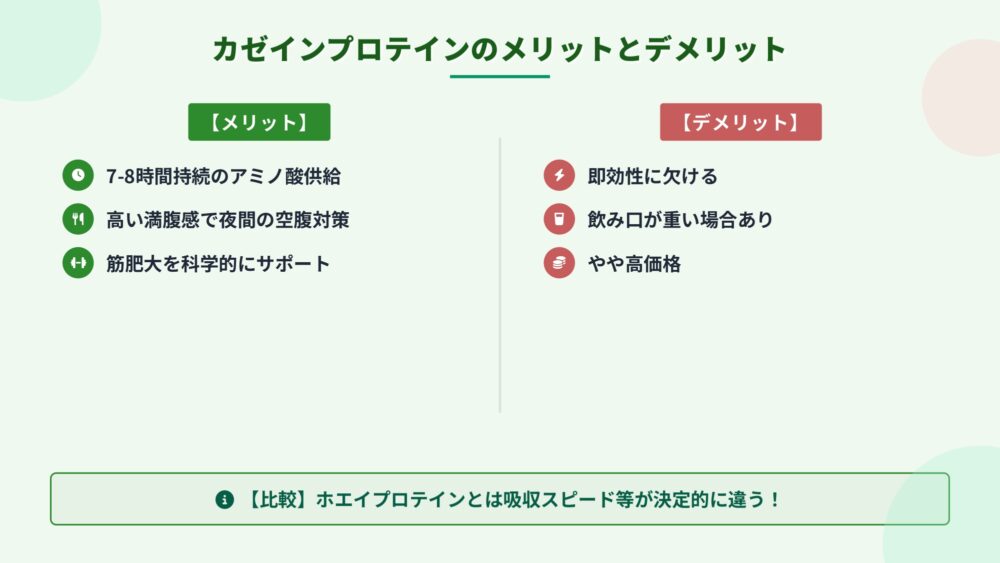 筋分解抑制 | 夜間効果的 | 昼間は不向き | ホエイとの使い分け |