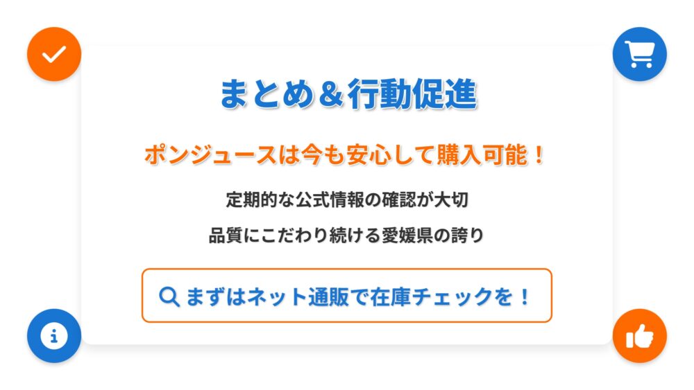 • ポンジュースは販売継続中(公式サイト確認済み・品薄や価格改定が噂の原因)