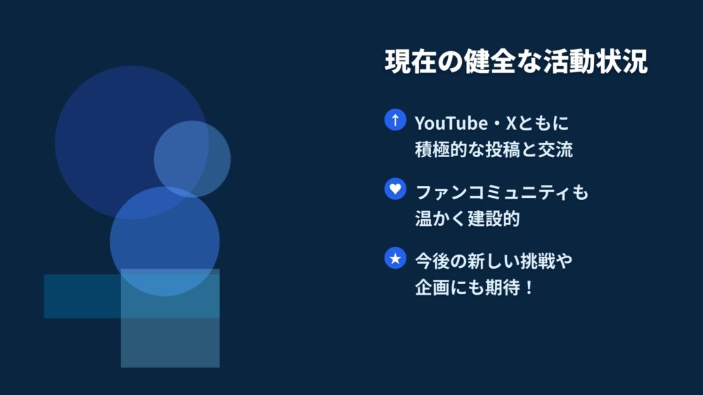 この「通常運転」は、活動停止や連続的な謝罪発信が見られるケースとは対照的です。一次情報の動き方自体が、健全な状態を示しています。